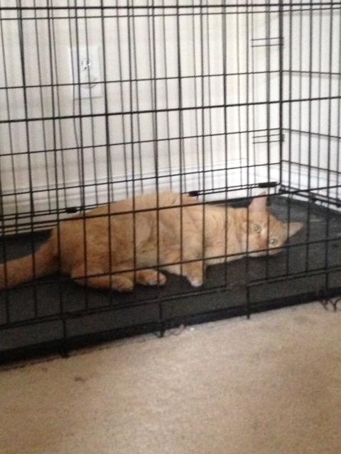 • 3 years old. Orange cat with light stripes. 12 pounds.