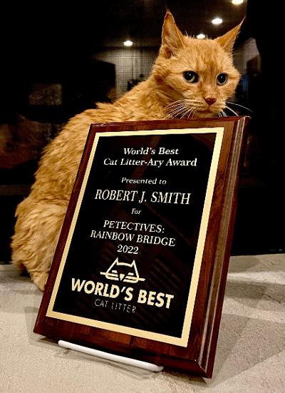 Petectives: Rainbow Bridge was awarded the 2022 “World’s Best Cat Litter-Ary Award from the Cat Writer’s Association sponsored by World’s Best Cat Litter. Previous winners of the award include books from Carole Nelson Douglas’ “Midnight Louie” series and Shirley Rosseau Murphy’s “Joe Grey” mystery series.